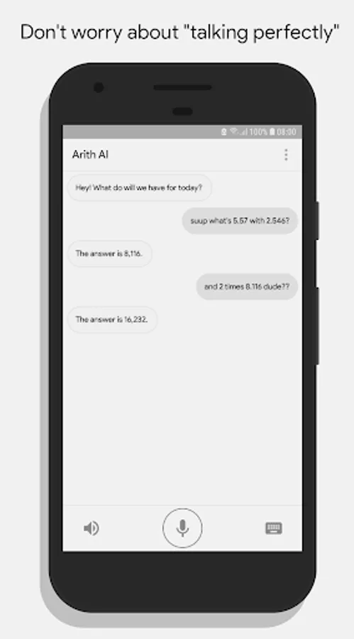Arith AI supports voice input, which is converted into text and interpreted by our powerful interpreter.
