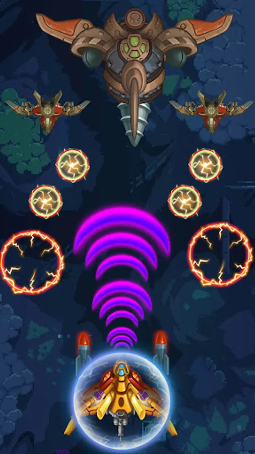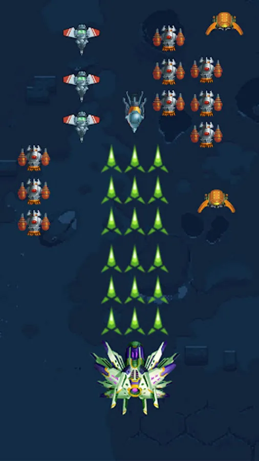 - Use coin and gem to upgrade or evolve your space crafts to fight with giant enemies and alien invaders.
