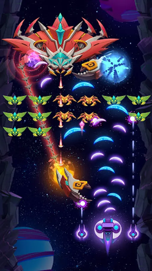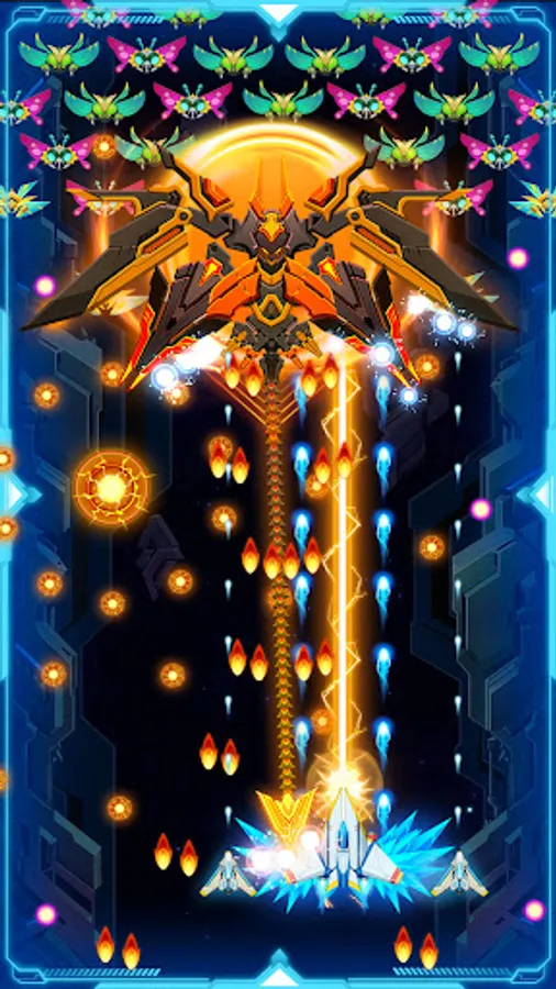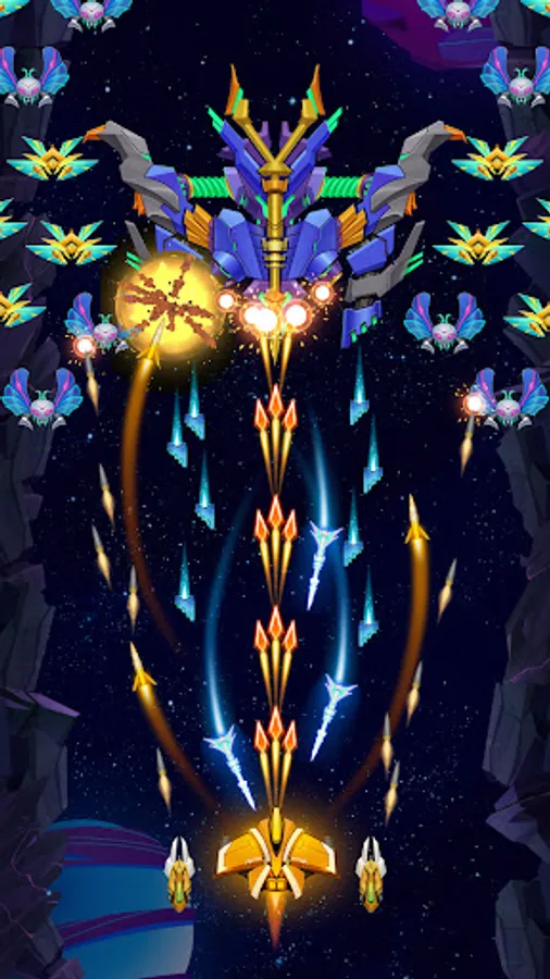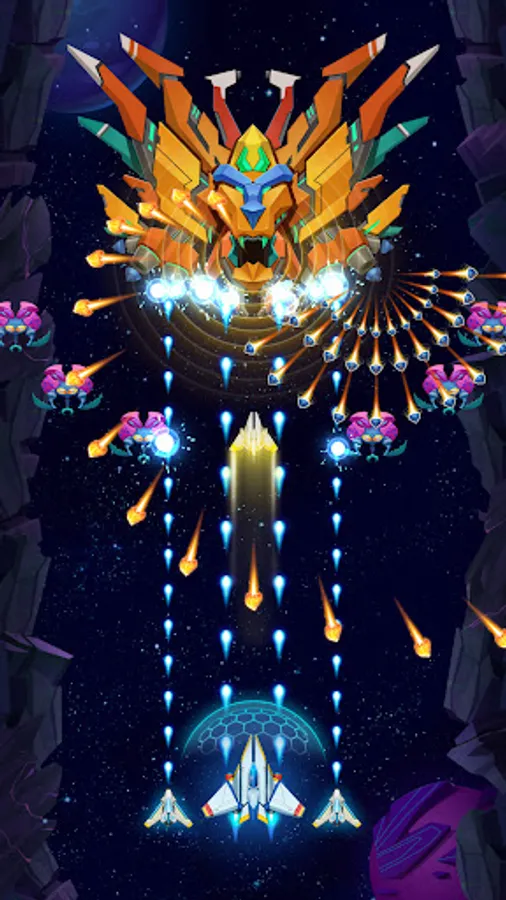 If you are a fan of spaceship shooting games and like the glory and sense of mission brought by this kind of games, then it is the shooting game you should play. In this thrilling combat flight action game, you can act as an elite shooter to control your warplane, travel through the vast galaxy battlefield and explore space.