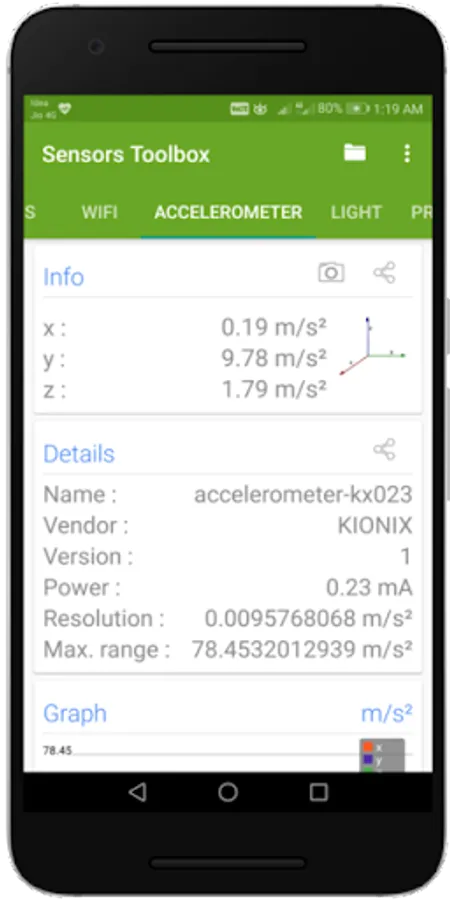 Sensor Toolbox App gives detail information about Sensors and read sensors real time data and plots real time graph