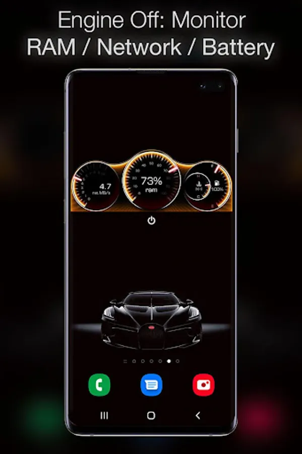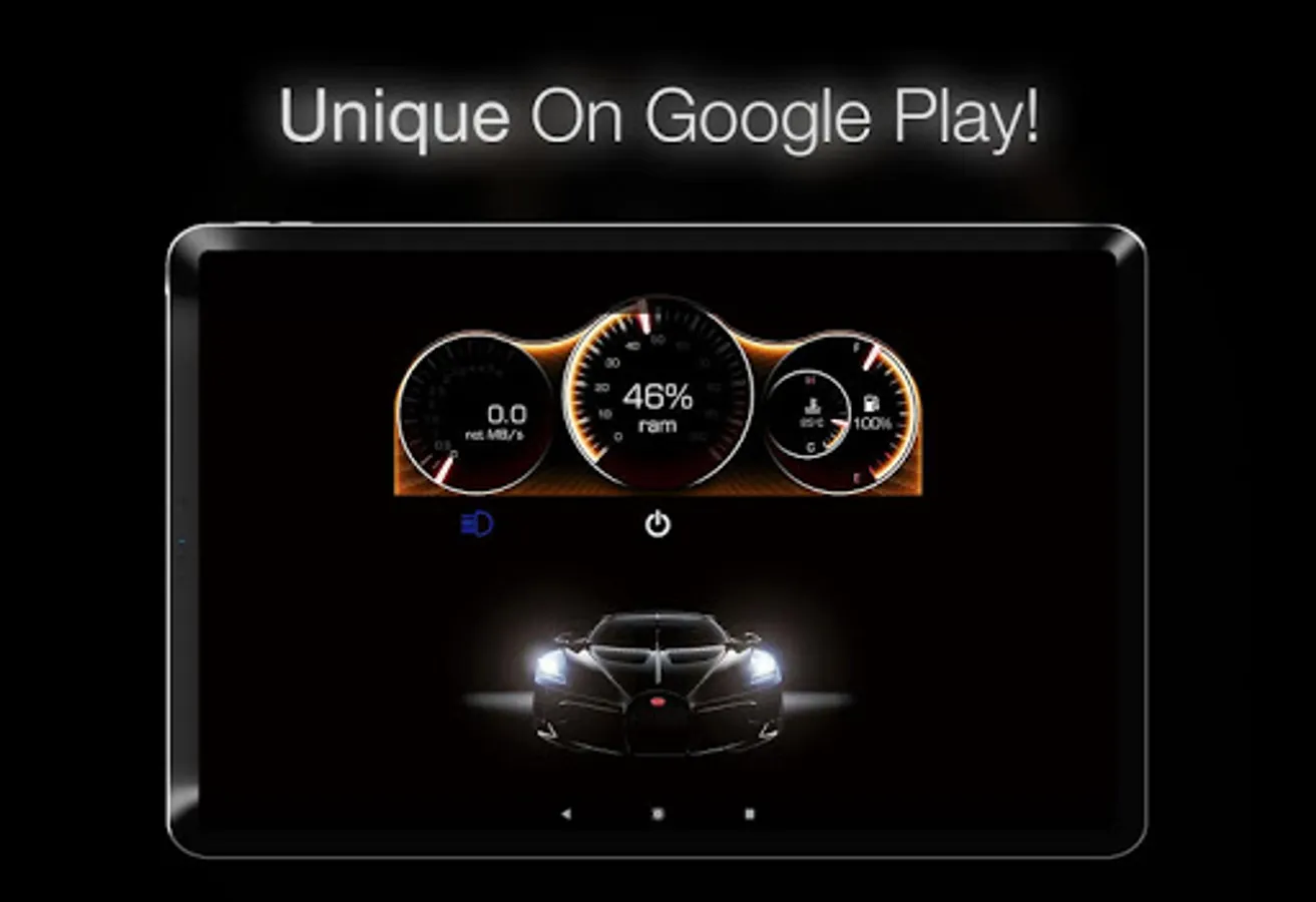 When the live car simulator is turned off, the car dashboard transforms into a stunning resource monitor. All the important data that include RAM usage, network usage, battery usage, and device battery temperature variation are visible in this stage.