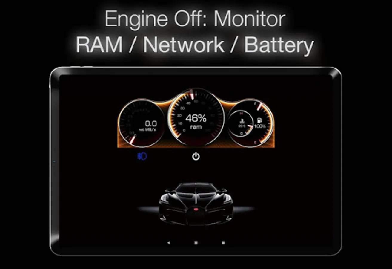 - Turn off the engine to transform it into a stunning device resource monitor. You can inspect RAM usage, network usage, battery usage, and device battery temperature variation.
