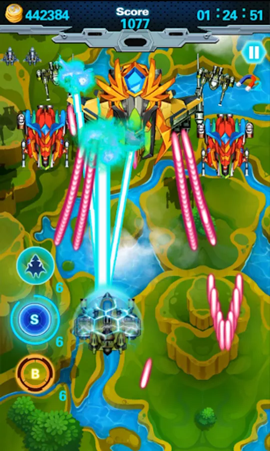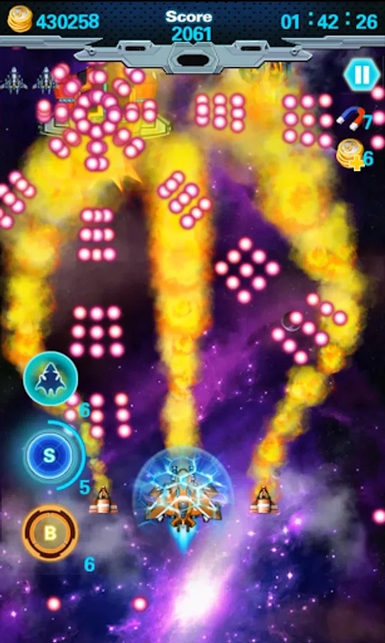 In 1942, the Battle of Great War in the galactic showed that the entire galaxy is in peril. You are the chosen protector of the galaxy that destined to stop the Great Space War and defense the Earth from the alien attack. Assisted by the advanced technology of the Ancestors, your squad broad a big spaceship that flying in the midway of the galaxy with powerful gun and equipment. The invaders aren't easy to take down and avoiding their 'bullet hell' is must-have skill.