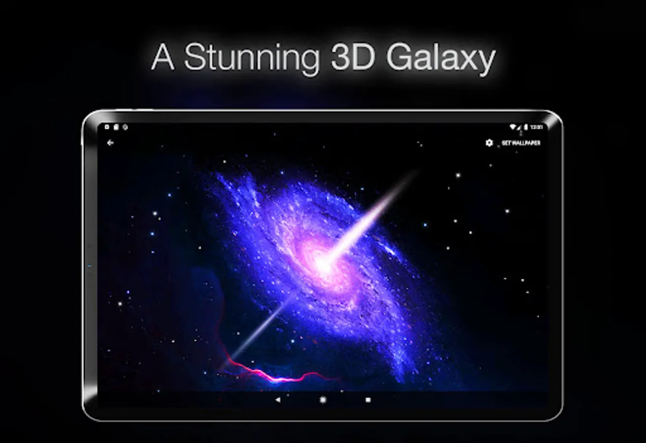 Dive into a spectacular vision of 3D galaxies with our live wallpapers. Interact with the galaxy cores, and rotate them in a 3D universe with a simple touch. Observe the majesty of nebulae, stars, and planets, all at your fingertips. You can set our galaxy live wallpapers on both your home screen and lock screen (subject to device compatibility). Customize your display with a variety of backgrounds, each perfectly complementing the 3D moving spiral galaxy. Enhance your experience further with the galaxy jets streaming away from the black hole at the galaxy's center. For a truly immersive journey into the cosmos, each wallpaper comes with a deep space sound effect, ideal for sleep or relaxation. Experience the universe like never before with our Galaxy Live Wallpaper app!