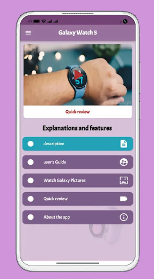Not an official application Galaxy Watch 5 . is just an educational application that will help friends better understand Galaxy Watch 5 walkthrough.