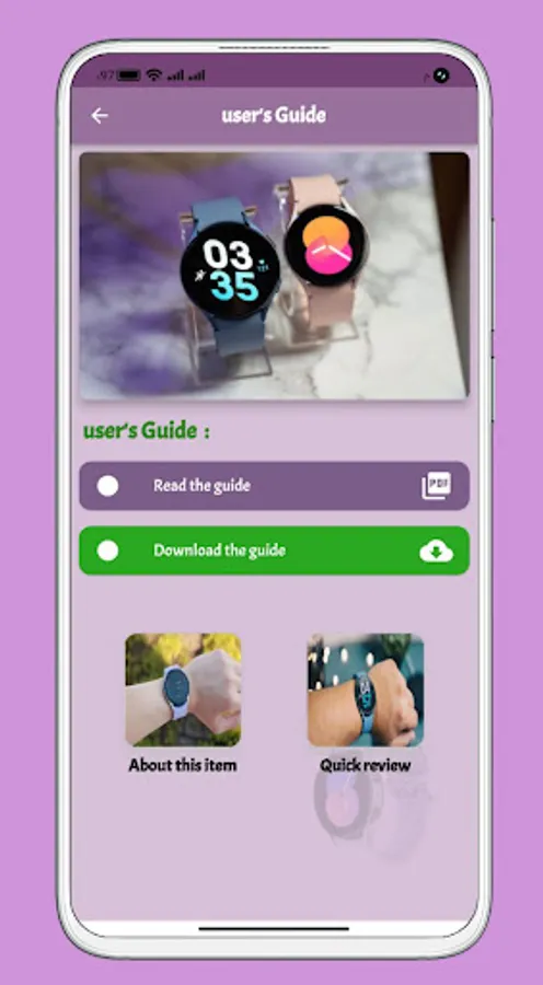 To find out more information about how to use the Galaxy Watch 5 , download our Galaxy Watch 5 guide app. Our mobile app lets you find out what you wonder about Galaxy Watch 5.