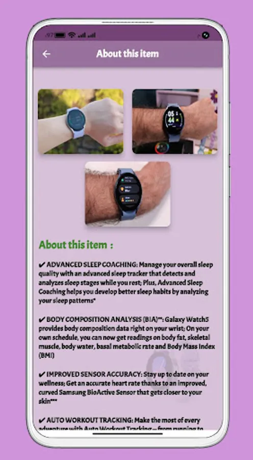 - Contains many pictures to see all designs of Galaxy Watch 5