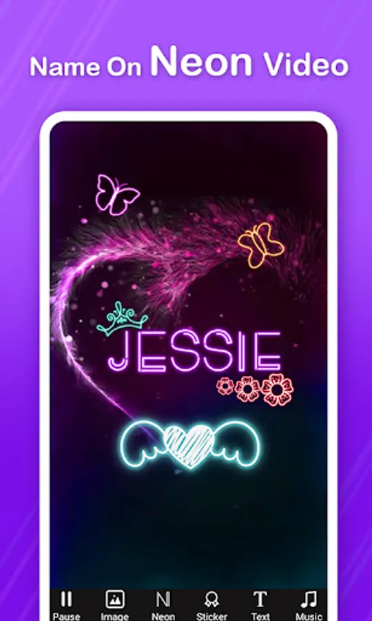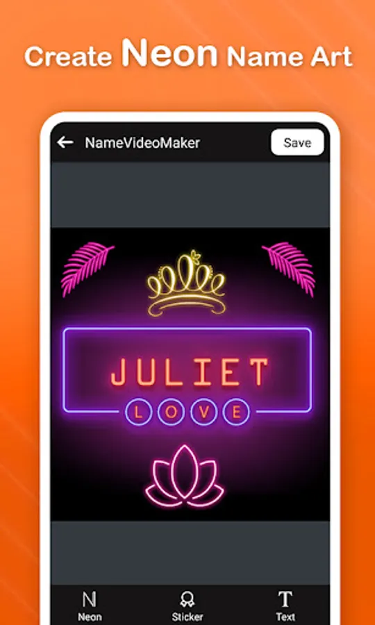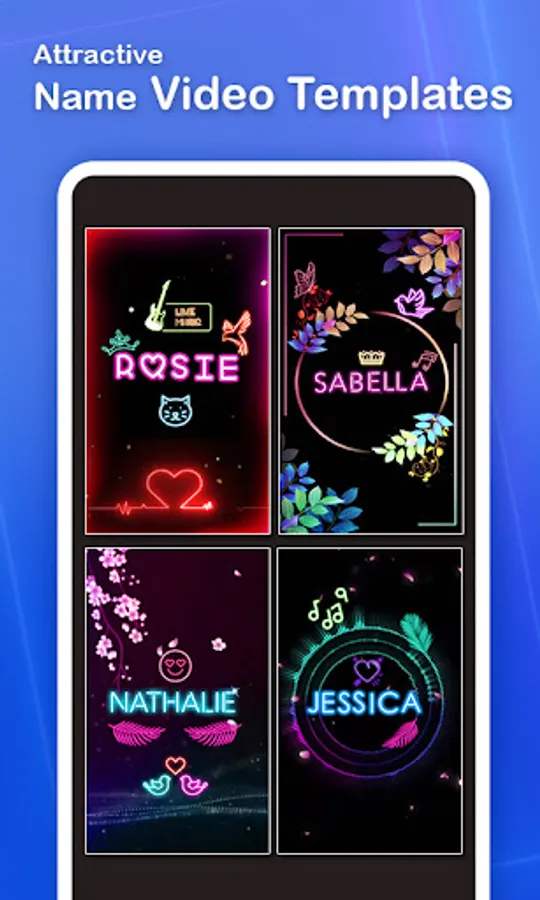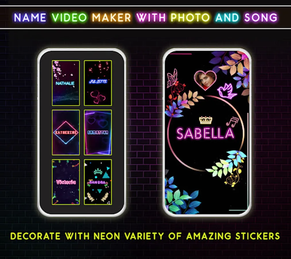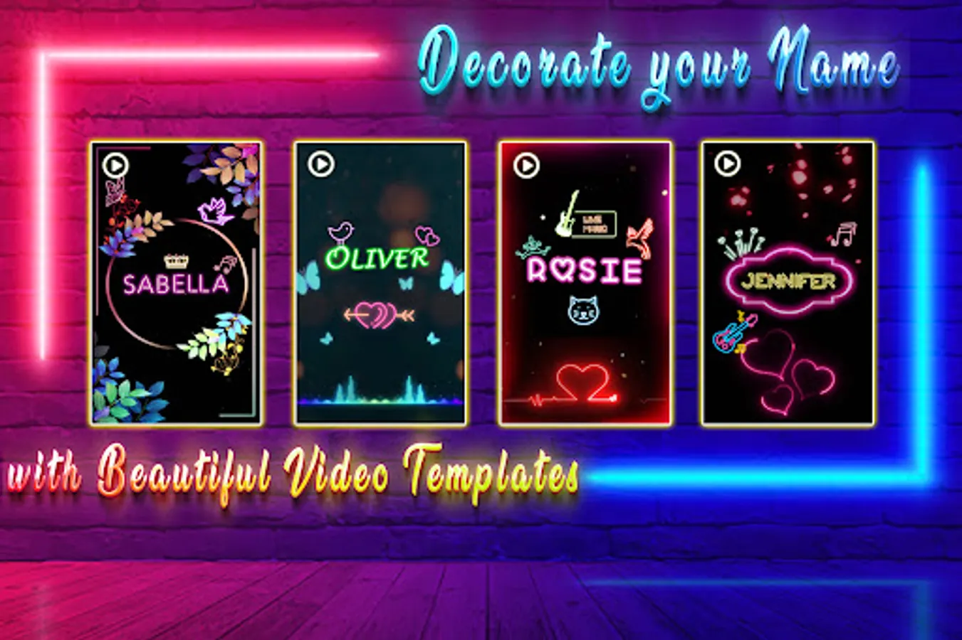 Name on Video Maker is best app to create videos with Name, Photo and it’s very easy to use. You can add neon text, stickers and add image to video to make more creative and attractive. Create beautiful and stylish calligraphy Neon names using this app.Share videos to your friends make fun.