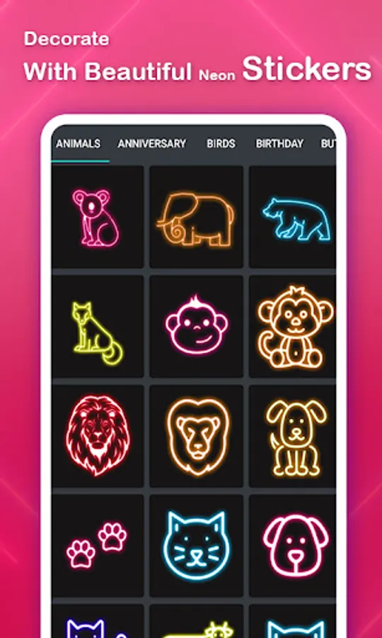 This app provides lots of stickers with neon effects. These stickers will make your video more funny.