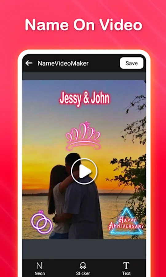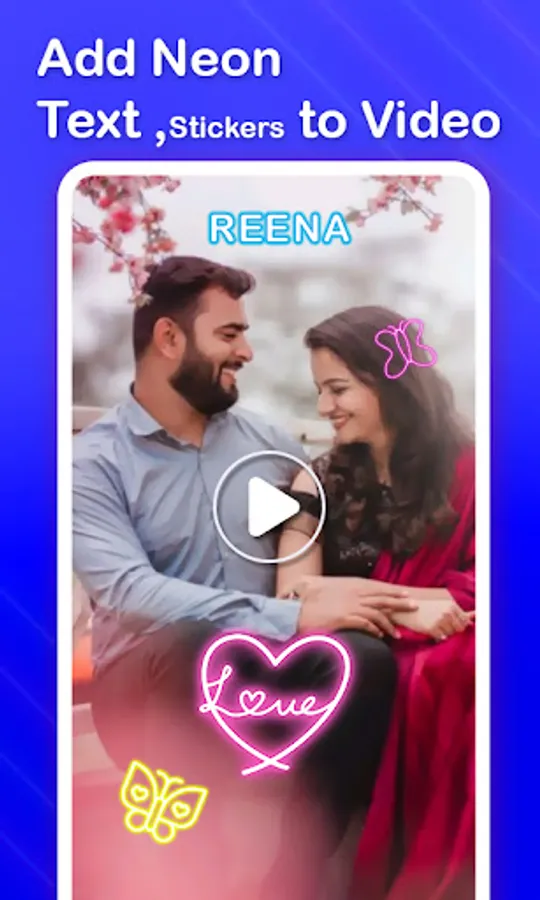 Select a video from gallery and make video more attractive than original video by adding neon text, stickers, images and text to video.