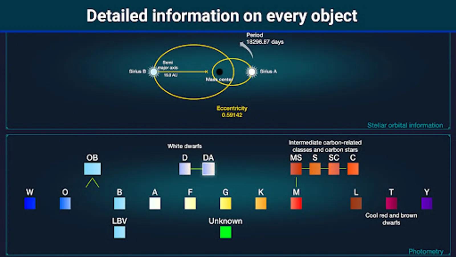 ★ Extensive online database encompassing approximately 7.85 million stars, over 7500 exoplanets, 205 circumstellar disks, 32868 black holes, 3344 pulsars and over 150 moons in our Solar System (plus exomoons)