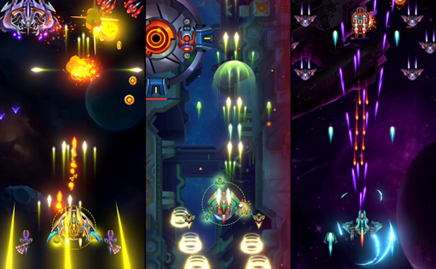 Space shooting is start now, plan your battle strategy well and upgrade your fighter to protect our home. Download this Galaxy Squad: Space Battle Shooter & Galaxy Attack and enjoy it🌌!