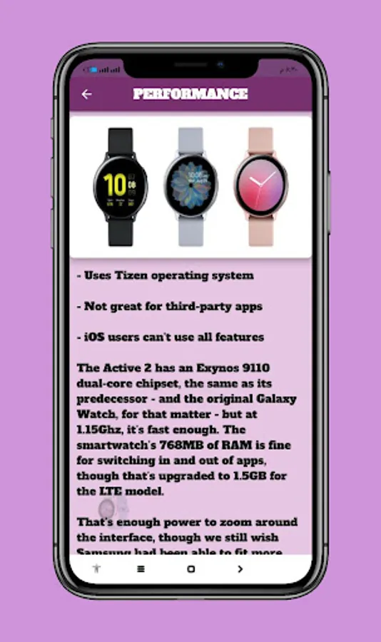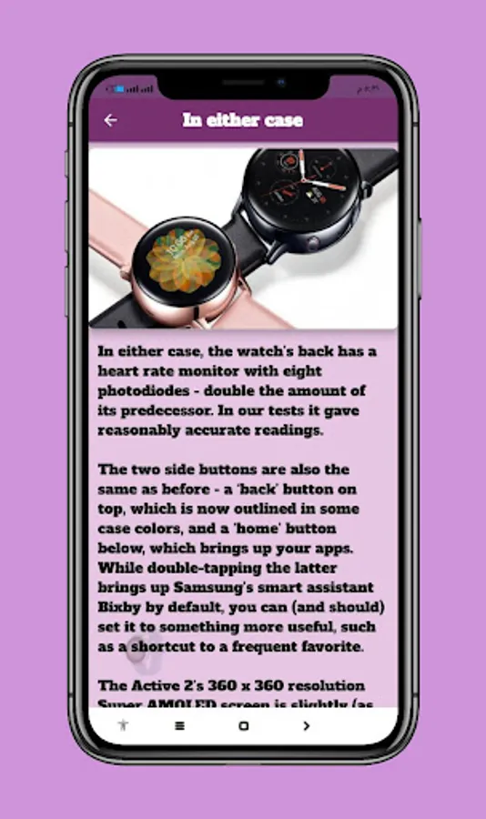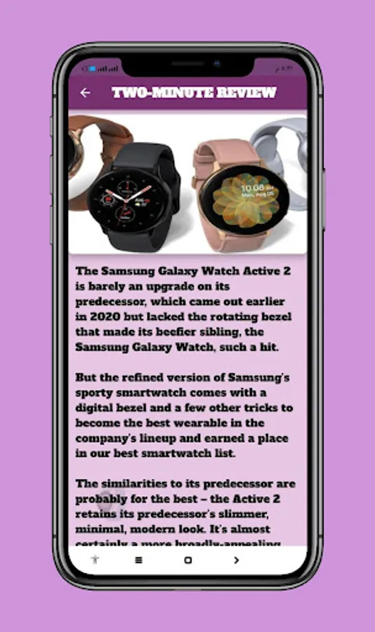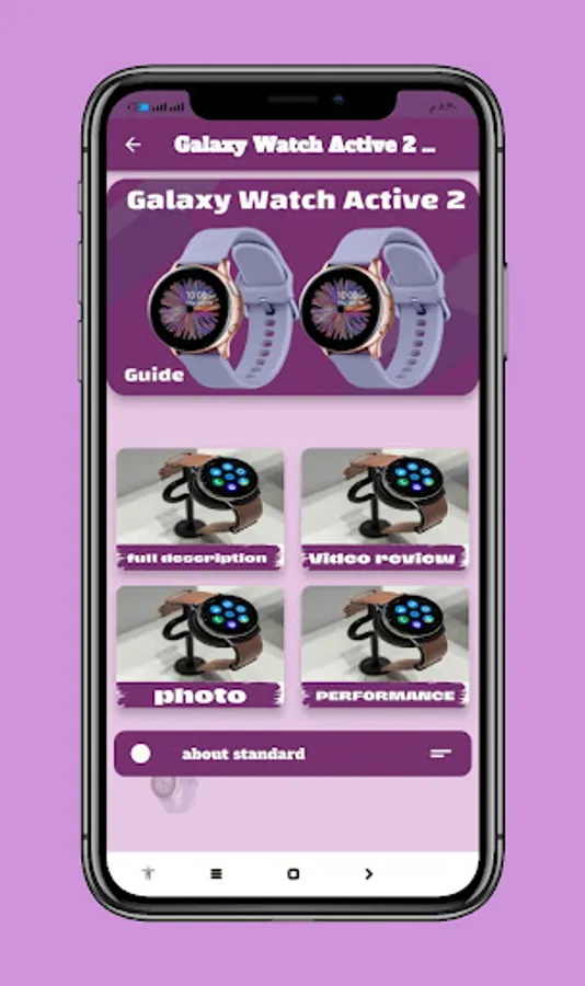 An app Galaxy Watch Active 2 that gives you information about Galaxy Watch Active 2
