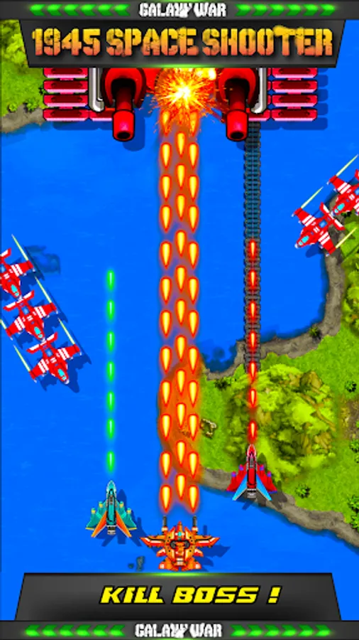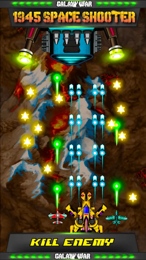 If you are one of the big fans of those classic galaxy shooting game series (a.k.a galaxy shooter / space shooter / shoot 'em up / space invaders / galaxiga / galaga/ ), Galaxy War 1945 Space Shooter will clarify your feeling with those game series. The classic game style, but the new way of expression will fascinate you while you play. Galaxy War 1945 Space Shooter will bring you new enemies and bosses in the Galaxy War. Do you think you have enough skills to survive this epic battle with these alien invaders?