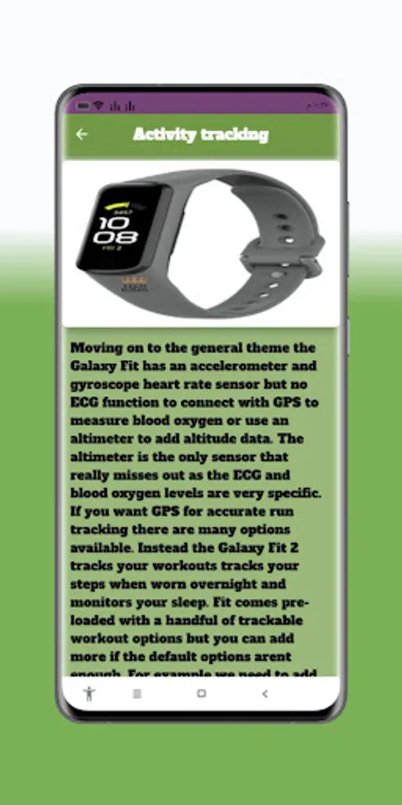 - In this app, you will find all the details you require about the Galaxy Fit2.