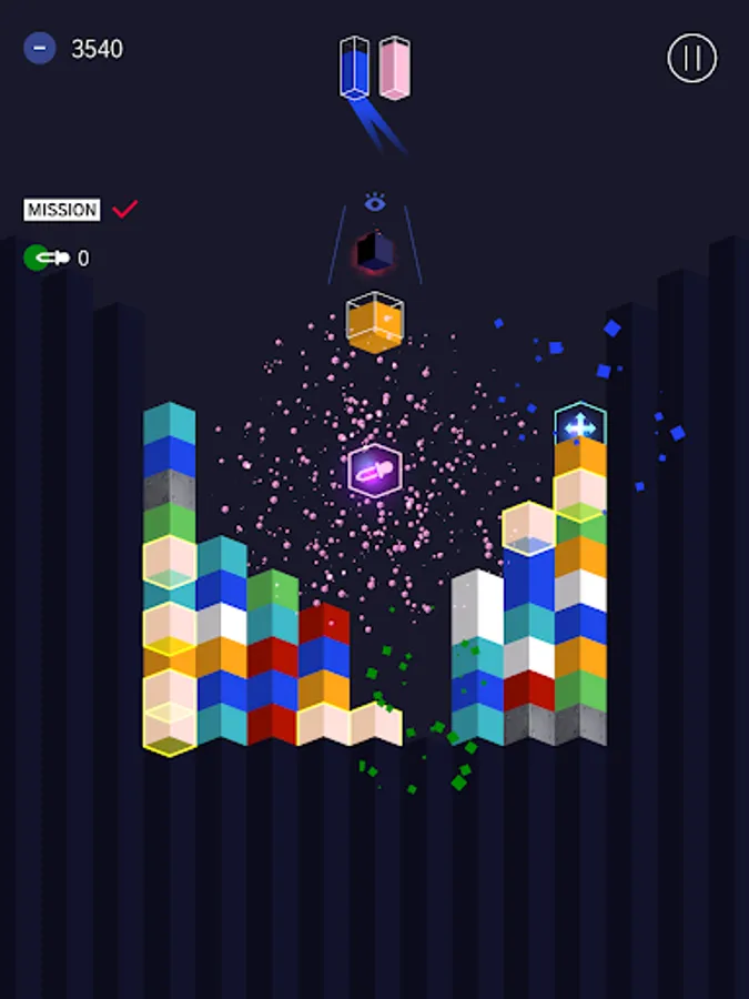 Colornoid is a game where players complete levels by moving colored cubes falling from the top of the screen to make a match of three or more of the same color.