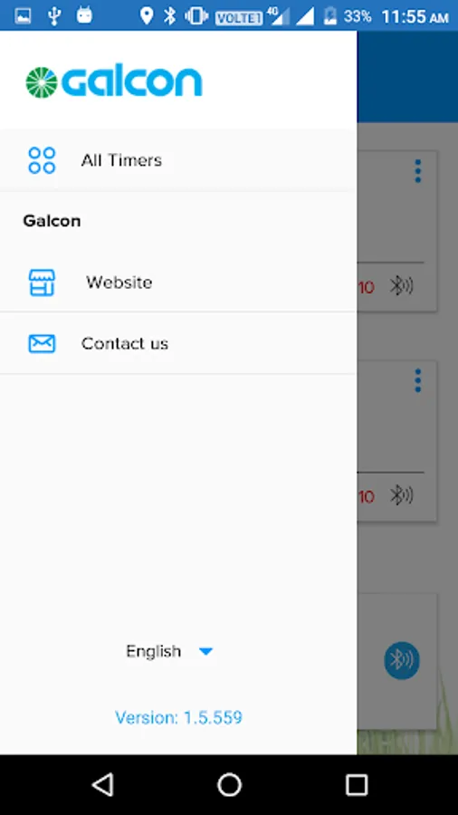 The App operates Galcon Bluetooth enabled controllers, models 7101BT, 9001BT, 11000BT.