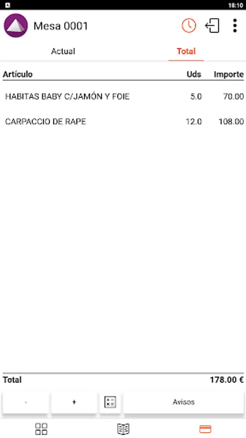 - Configuration of different areas for receiving orders (bar, kitchen, etc.).