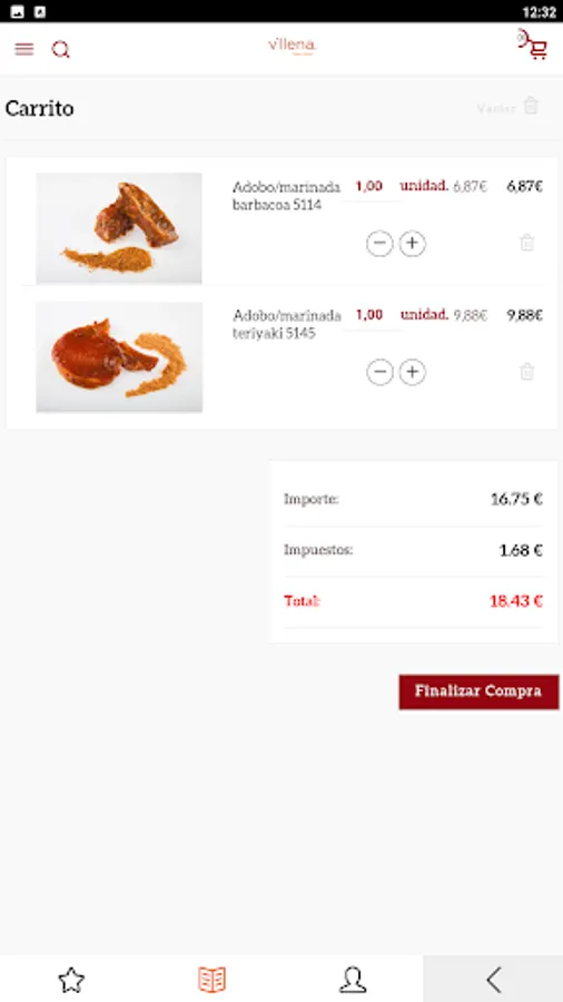 After indicating username and password, the application shows default articles and possible offers. The user will be able to add these items to his order or search for others. For each article you can select the type of format and corresponding units.