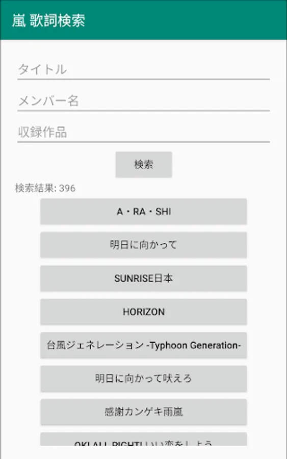Also, if you enter the name of an Arashi member in the member name field, you can also search for solo songs of that member.