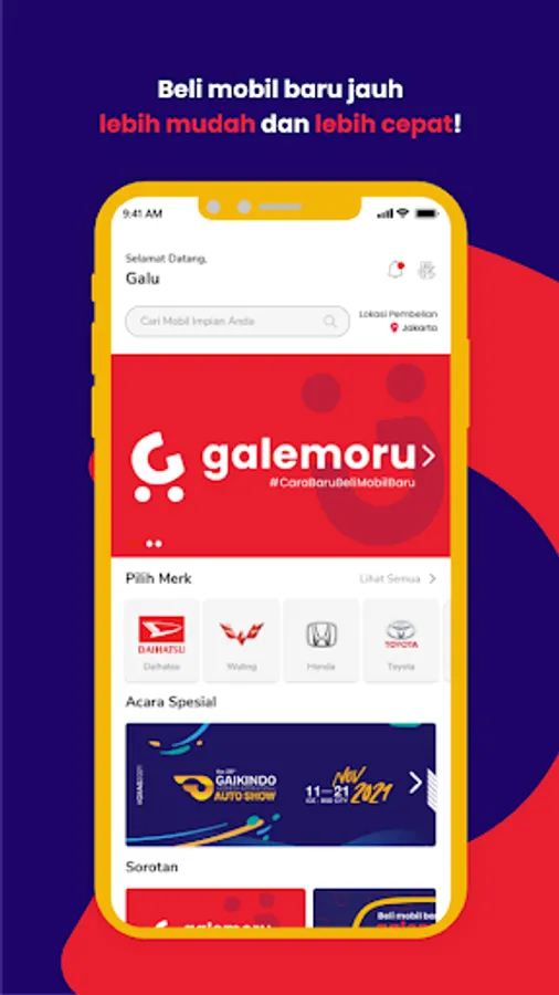 Galemoru was founded in early 2020, when the pandemic changed the way of life of all people, including the way they transact. Market demand related to motorized vehicles continues to run. Galemoru introduces the New Way of Buying a New Car, which is a complete solution for car buyers that is friendly and safe to use by the entire community. Galemoru gives freedom to users through only one application. Each user can choose a vehicle that is definitely available, along with trusted leasing and insurance options. Galemoru has cooperated and can be held accountable for its legality. Users can choose vehicles according to price preferences, dealer locations, leasing, and insurance without the need to visit dealers one by one.