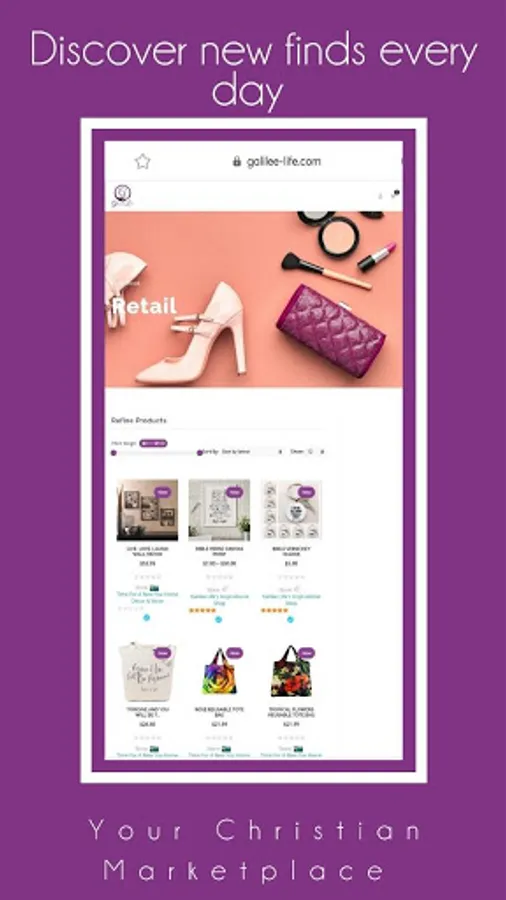 The Galilee Life App provides customers with a variety of options to shop from Retail, Handmade and Digital Items. This app is just like the website with the accessibility of not having to open your website browser. This app allows you to shop directly from your android devices.
