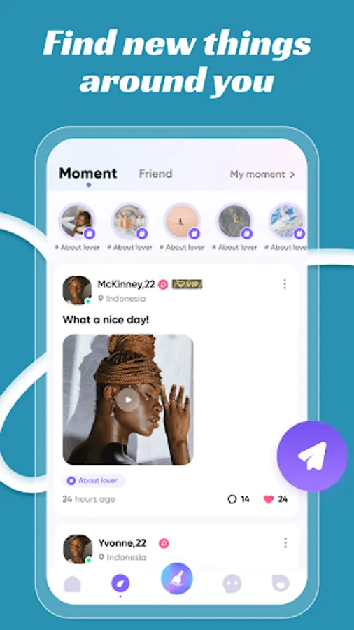 Sending LIKE can meet with him/her much easier or messaging to start chat directly!