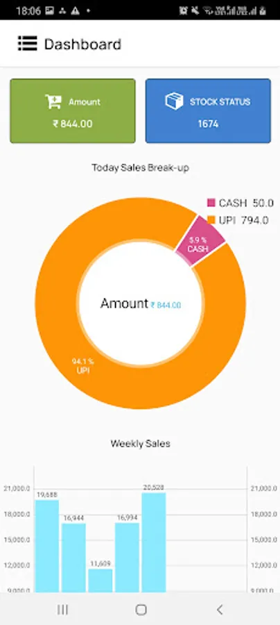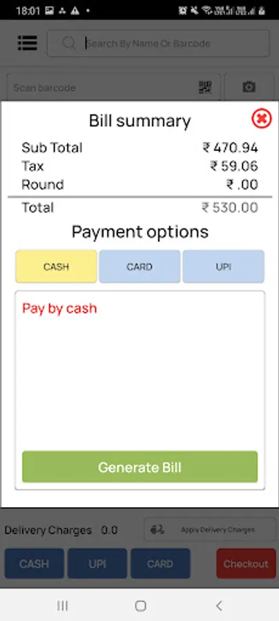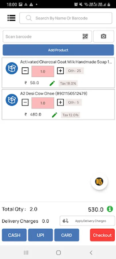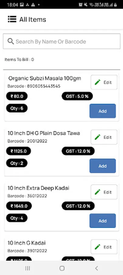 Add your items/products and their stock value. Update item stock whenever a new sale happens. Add items just by scanning the barcode & make sales easily.