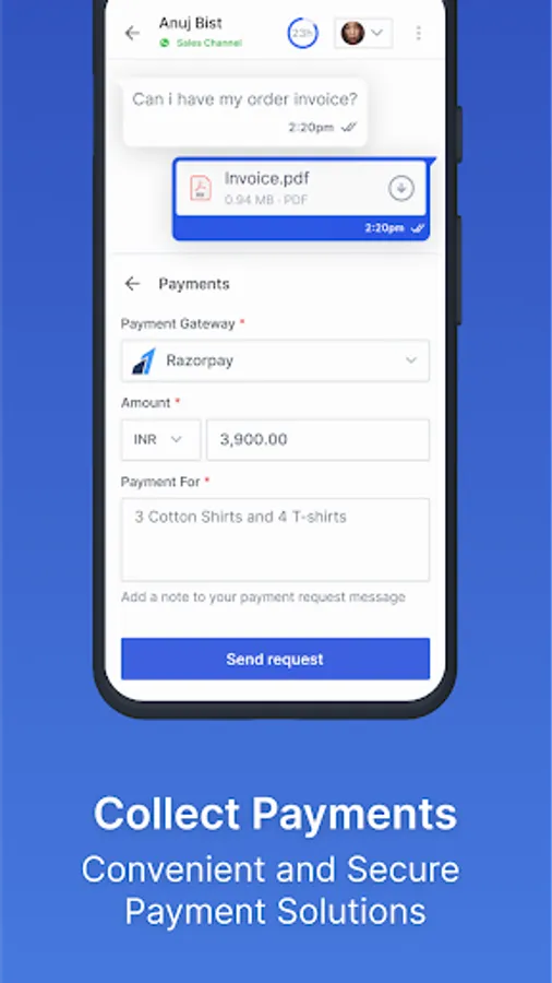 💰 Simplify Payments: Generate payment links and collect directly via WhatsApp.