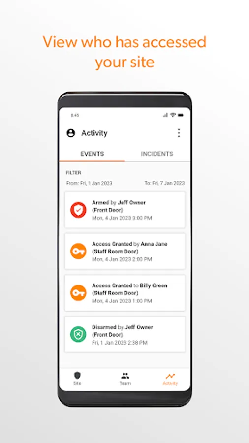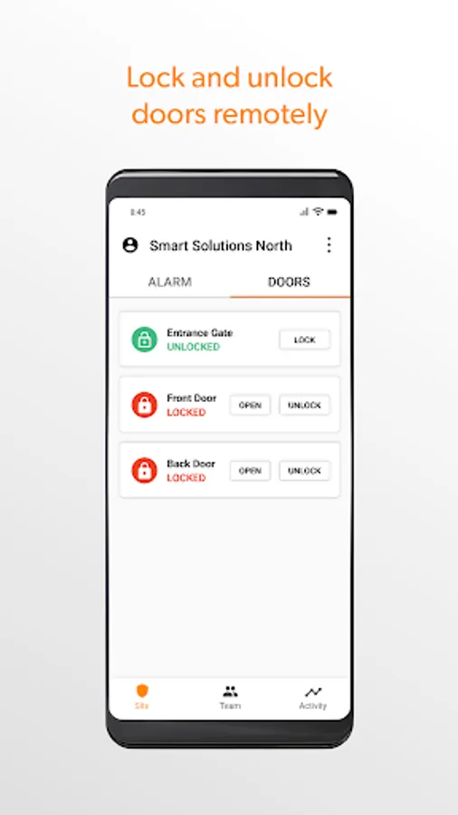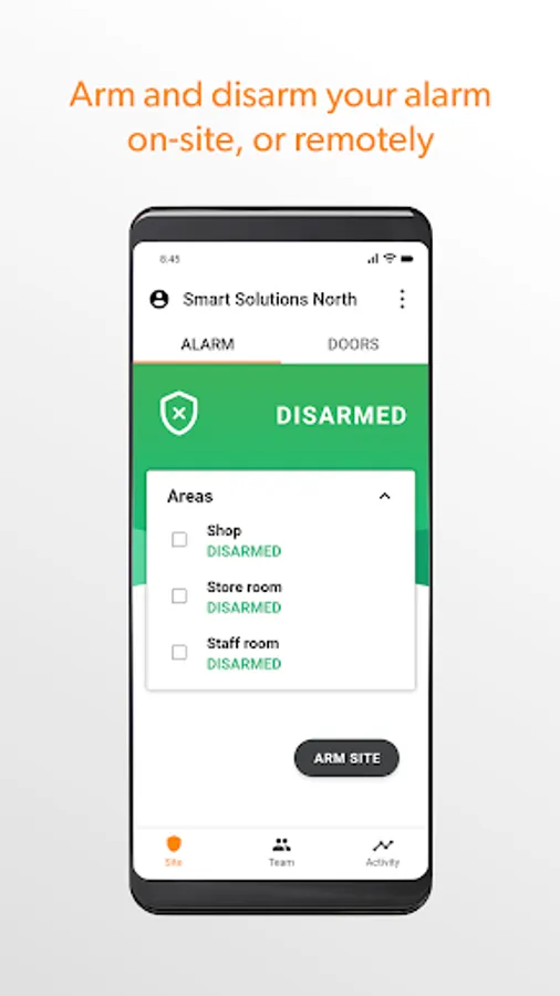 Arm and disarm your alarm, manage unlimited users, lock and unlock doors, receive alarm notifications across multiple sites, directly request a security guard and opt for third-party monitoring.