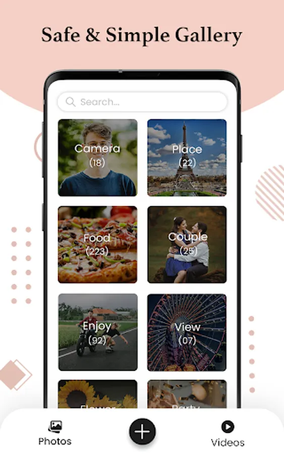 🔒 Secure Your Media: Our photo gallery lock is designed with your privacy in mind. Lock away your private photos and videos in our secure photo gallery vault. Set a pattern, password, or PIN to encrypt and protect your media within the app. Safeguard your precious documents, videos, photos, and GIFs, by storing them in our encrypted vault lock.