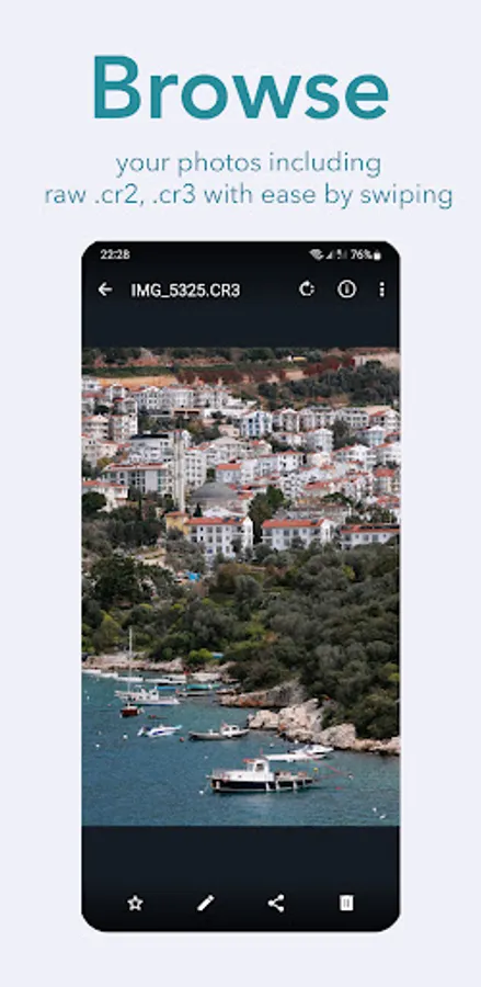 Simple and fast gallery application with support for raw image files from Canon, Nikon, Sony and Fujifilm cameras. Raw Image Viewer. Android app for importing and viewing raw images from professional cameras on your tablet or smartphone. Acts as a file manager supporting .cr2, .cr3, .nef, .raf raw formats including viewing and transferring files from/to usb storage connected via hdd/ssd disks, camera flash drives connected via usb adapter.