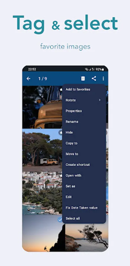 This is the first and so far the only android application with which you can quickly view in full-screen mode by swiping through raws and then select only a few photos from several hundreds or thousands of photos in folders from a camera flash card connected via usb to your tablet or phone. And then copy only those selected photos to your phone or tablet's internal memory or flash card, and then delete the rest of the raw photos you don't like from your external usb drive to make room on the flash drive for new photography