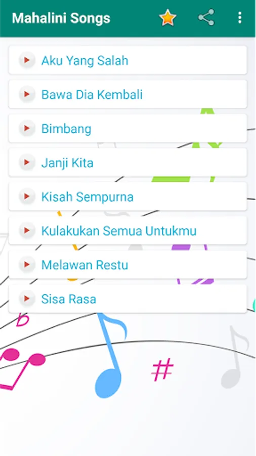 - Jika anda adalah pemegang hak cipta lagu yang ada di aplikasi ini dan tidak mau lagu anda ditampilkan, silahkan hubungi kami melalui email pengembang/developer yang sudah kami sediakan.