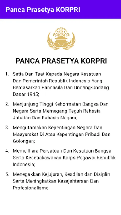 The Panca Prasetya KORPRI App is an application for viewing Panca Prasetya KORPRI texts
