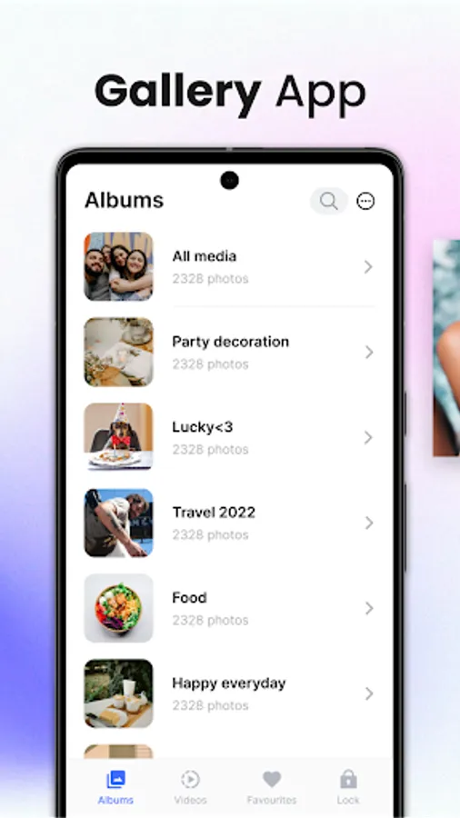 Organise your photos and videos by creating albums, setting your favourite albums and hiding unnecessary albums.