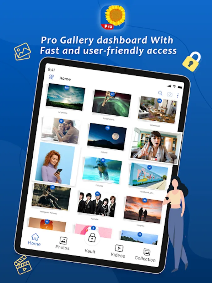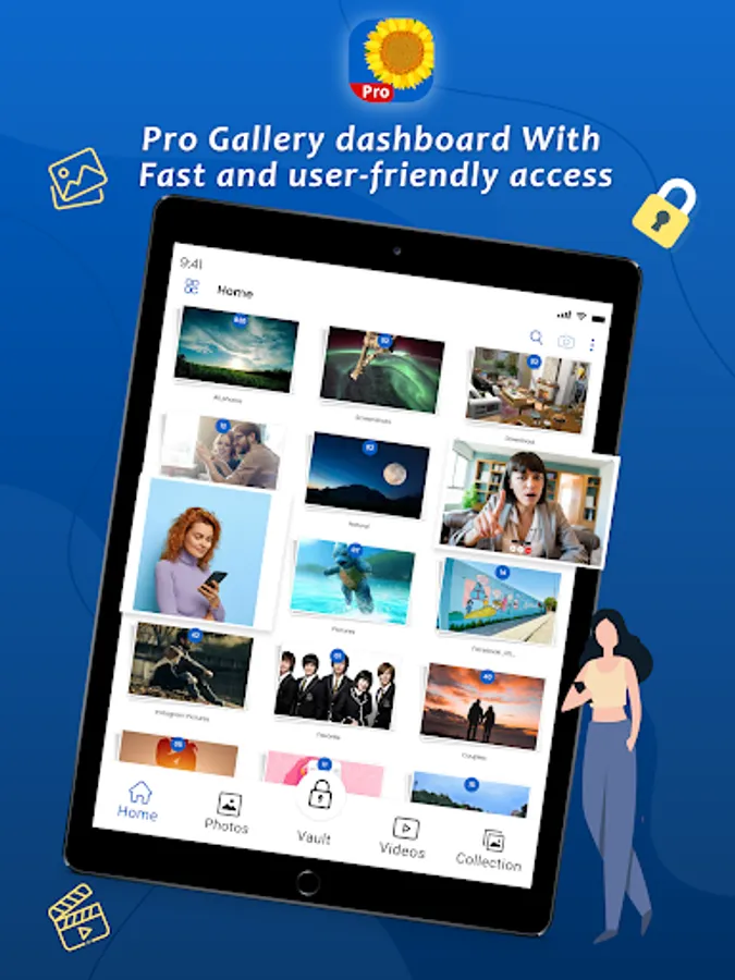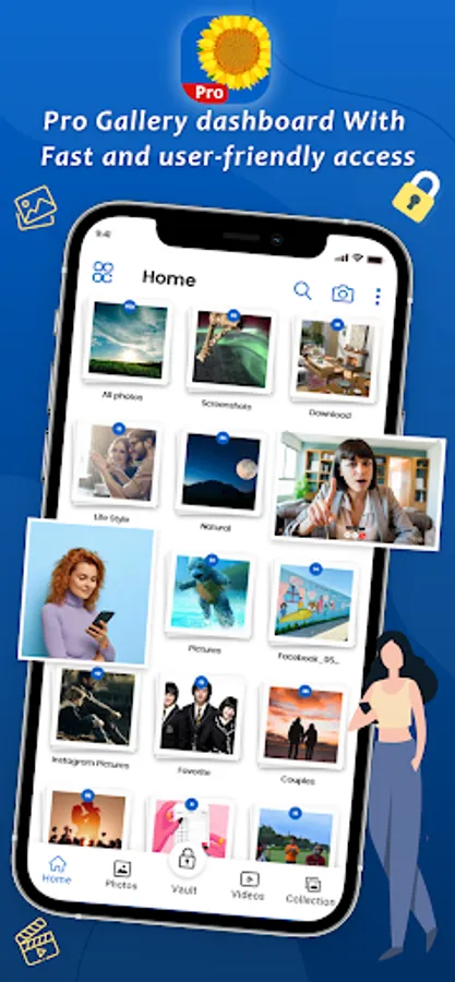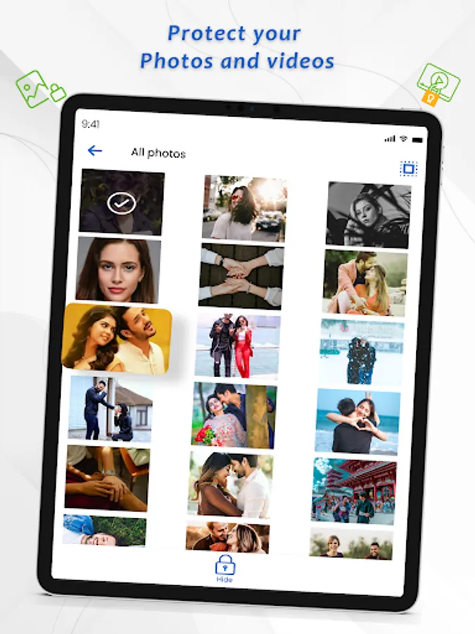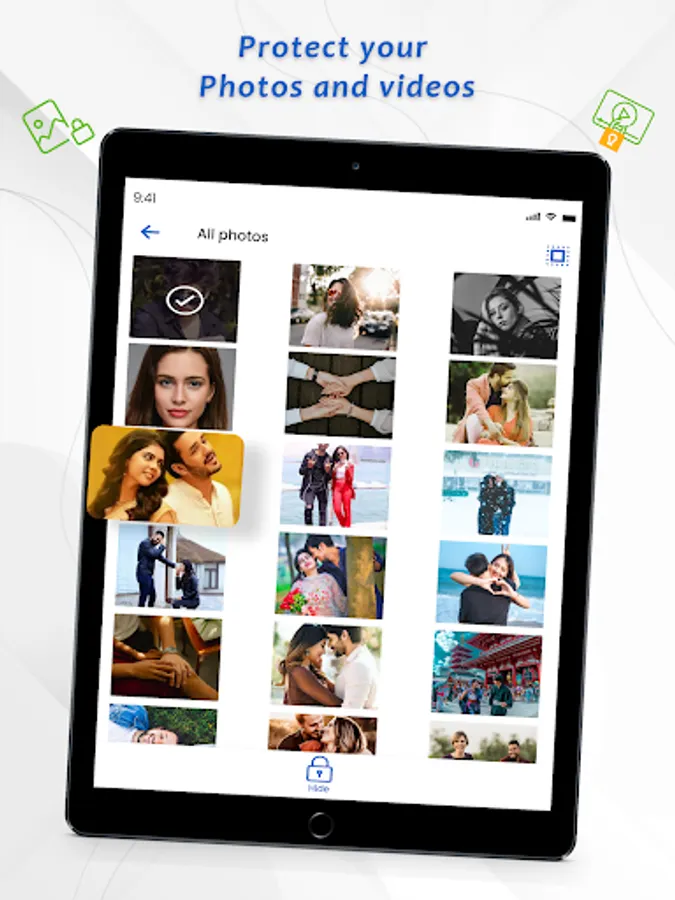 This Photo Gallery & Secure Vault is a best to secure app to hide your photos and hie your videos. It is A vault app for photos and videos. Using this app you can secure your private photos and videos. It is a Secret Photo Video Locker which can hide Private photo video lock. App is really good as photo lock and video lock with hide photo and hide video. Gallery Vault - Hide Pictures And Videos Gallery Vault app is a fantastic privacy protection app to easily hide and encrypt your photos, videos and any other files that you do not want others to see. Photo Gallery has the best editing tool to make your photos more attractive. The best alternative picture gallery, photo album and video player for your photos and videos.