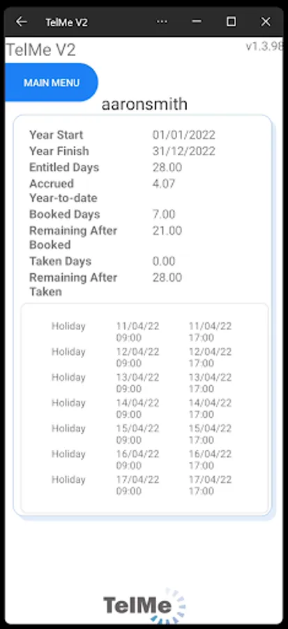 NOTE : This app will ONLY work if your employer uses the PeopleHours schedule application and service from Gallinet Limited and further provides access to the TelMe functions. All support for this app is provided by your employer only. We do of course welcome feedback and future development suggestions from all users and you can write to Telme.support@Gallinet.com