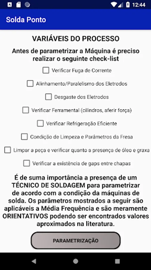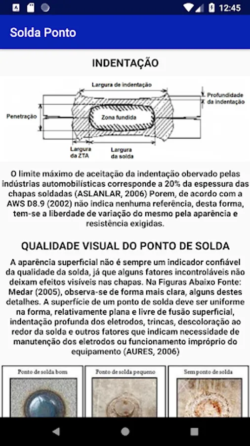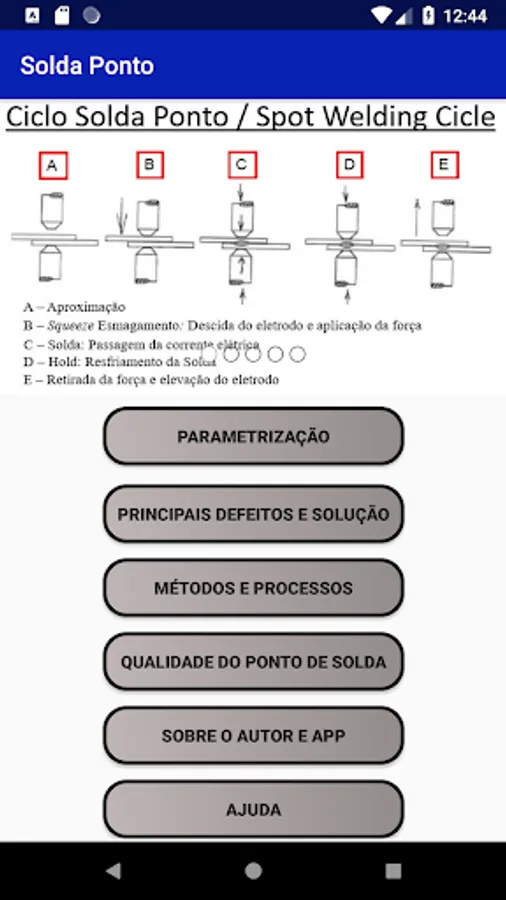The Solda Ponto application was created in order to help and guide welding professionals and students in a quick, accessible and simple way, to solve production problems that may affect product quality. In addition to being very useful to ensure the quality of the weld spot, the app assists production, in a guiding character, to achieve high productivity and eliminate line stops. The Solda Ponto APP was based on a qualitative dissertation research, carried out by the author himself, in the main literature on spot welding (RSW).
