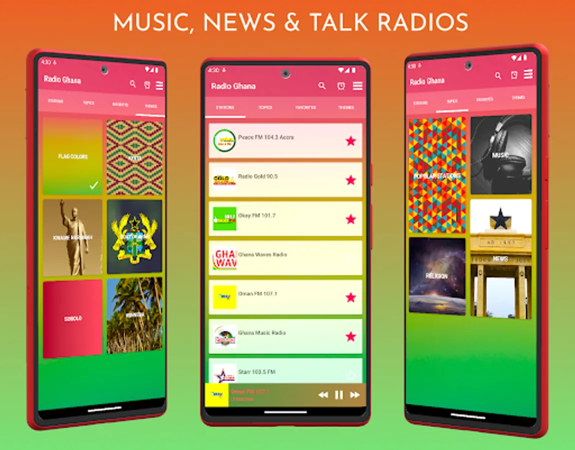 - Listen in the background: You can use other applications while listening to your favorite Ghana radios.