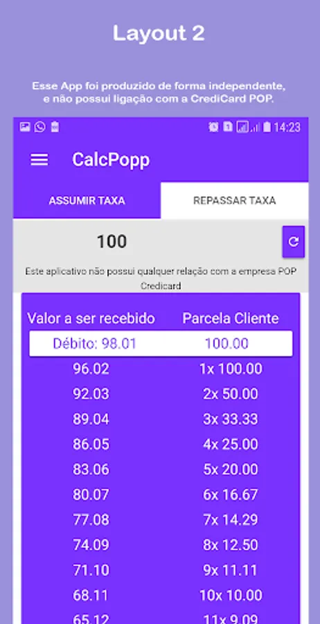 You can simulate if you pay pay Credicart POP rates if you will pass the rate to the customer.
