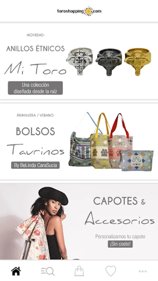 With the new Toroshopping App, you can browse and buy very easily and quickly. You can get any article related to the world of the bull and with Spain. From fashion accessories to wear on any occasion, such as handbags, cloak bracelets, bijouterie or T-shirts, even professional bullfighting capes and crutches personalized with your name, second hand tailored suits or tailored by our expert tailor, bullfighting toys for the little ones, sculptures and ceramics of bulls or bullfighters and flamencas, and all kinds of decoration and bullfighting gifts. Without forgetting our Outlet section, with the best discounts on fashion and gifts. And if you want to know more about the world of bullfighting, you can book your tickets to visit a bull breeding in Spain, or the bullring of Las Ventas in Madrid.