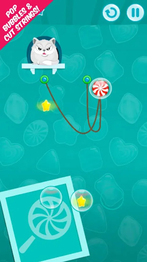 Now the cute cat named Cookie is back on your phone, through an endless cutting of the ropes or should we say strings. In this new cut rope/string game, the cute cat -Cookie- is looking to defeat the maze of ropes and strings, to get her striped candy.