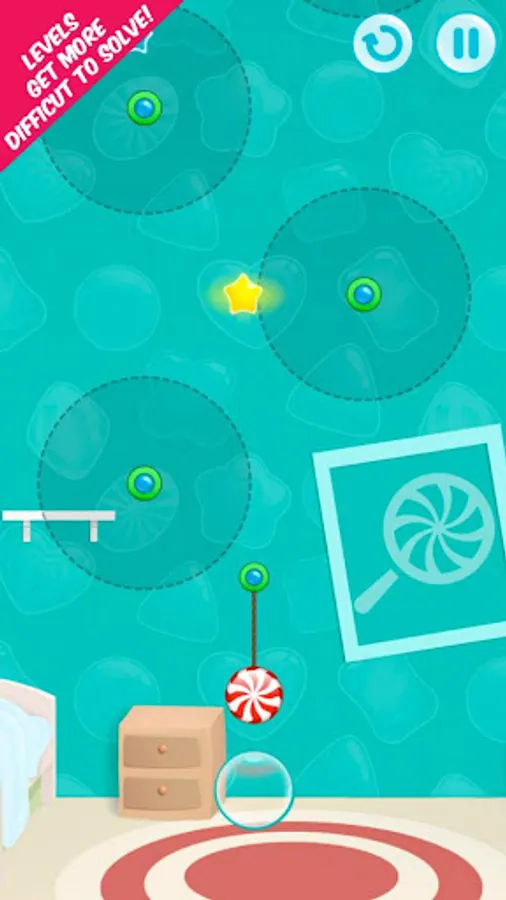 The game is pretty simple, the striped candy swings on ropes and strings through the level and by cutting the rope or string, you are able to move on to the next level.