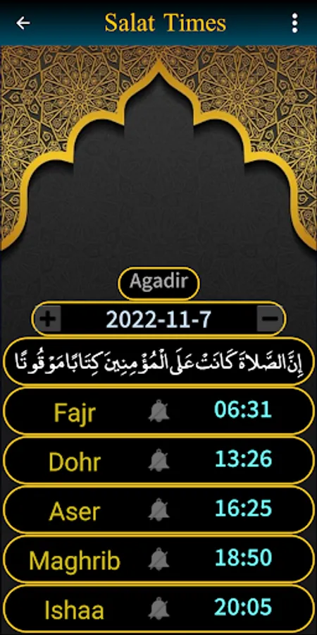 The times of the five daily prayers