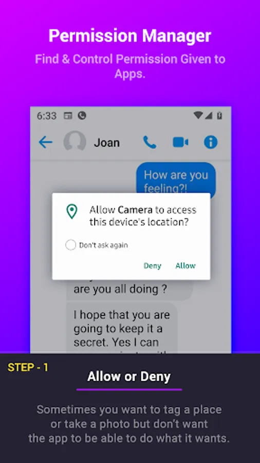 With Permission Manager you can grant one-time permissions, so you don’t have to adjust permissions every time you open any apps on daily basis. Can be use other way around so you can decide when you want to grant permissions any app