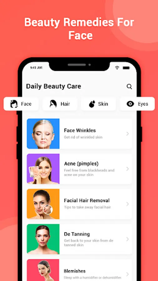 Daily Beauty Care app include number of Ayurvedic remedies for your beauty related problem.Here you will find lots of natural tips that can help solve their day to say beauty related problems like acne, pimples, dry hands, puffy eyes, alopecia, greying of hair, dandruff, etc.