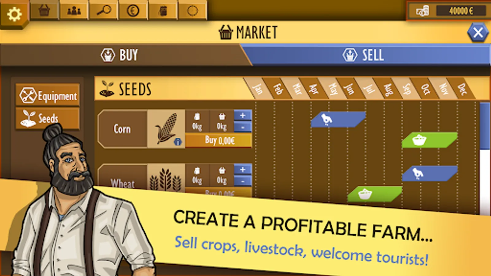 As the farm's head manager, you're in charge of affecting various tasks to your employees! There's loads to do: sowing seedlings, feeding your animals, cleaning, fertilizing, and even entertaining tourists!