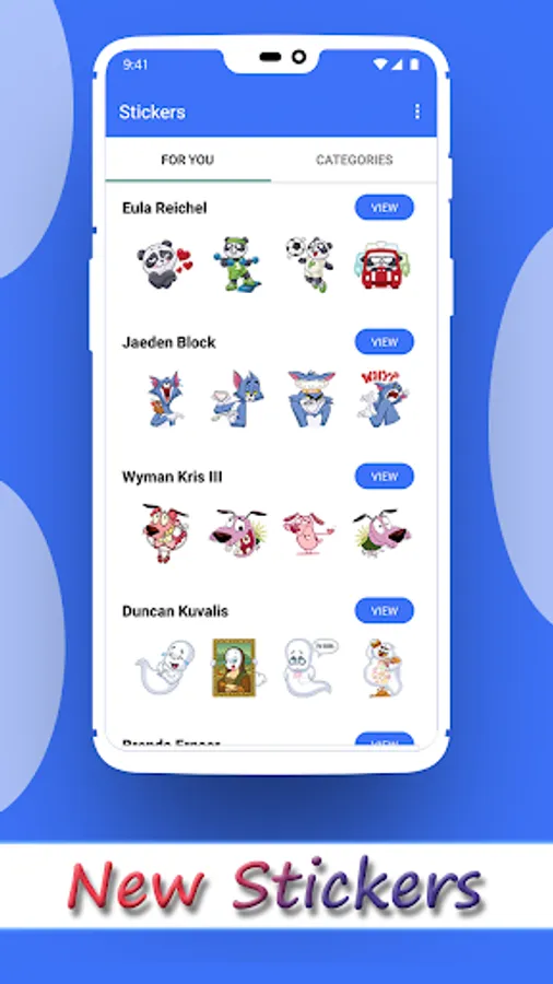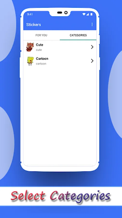 1. Open this application and you will find list of Trending Stickers, you can always explode new Stickers from Categories tab.