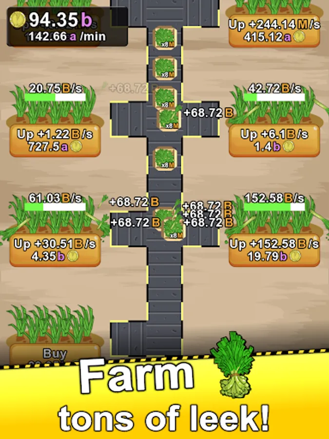 Do you like factories, conveyor belts, and production chains? If so, Leek Factory Tycoon is the ideal idle simulator game for you to awaken your strategic genius. What are you waiting for? Prove your Skill now and show on the online leaderboard that you are the master of tycoon! Look forward to regular updates with plenty of new recipes and fresh content for Leek Factory Tycoon! Now, we wish you lots of fun and success in managing your factory, and of course, loads of cash!